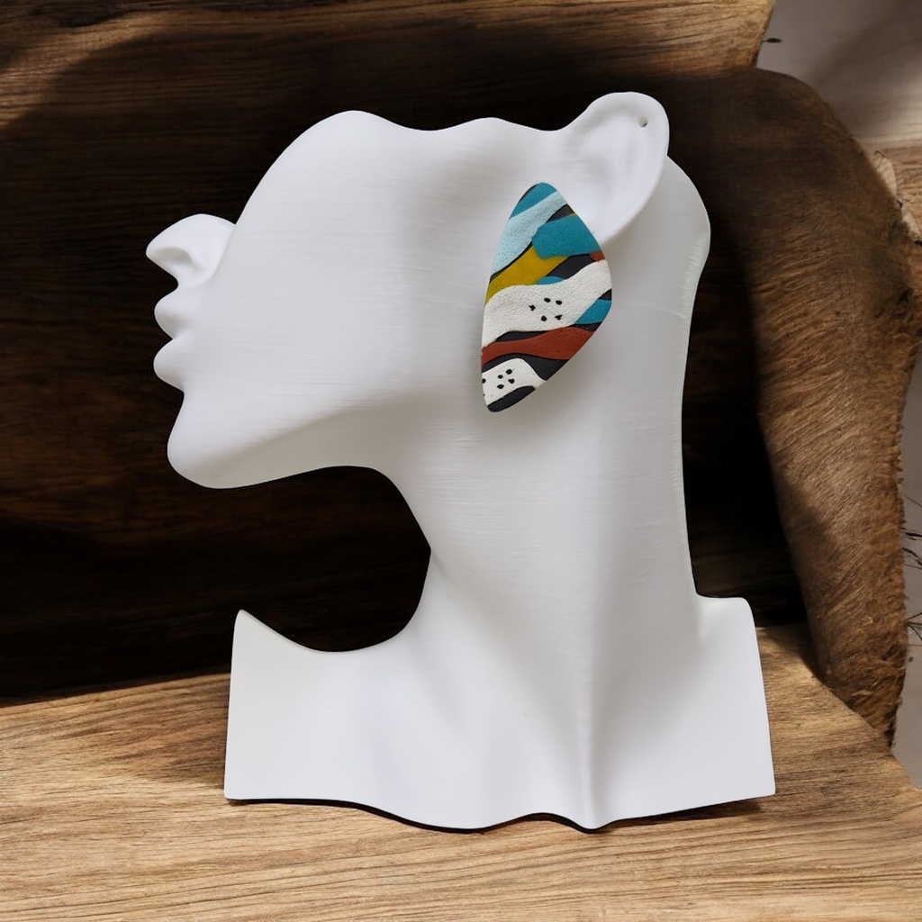 Feito à mão, cada par é único — uma pequena obra de arte em formato de acessório. Suas curvas orgânicas e mesclas vibrantes criam um contraste harmônico que transforma qualquer produção em um toque de autenticidade e leveza.