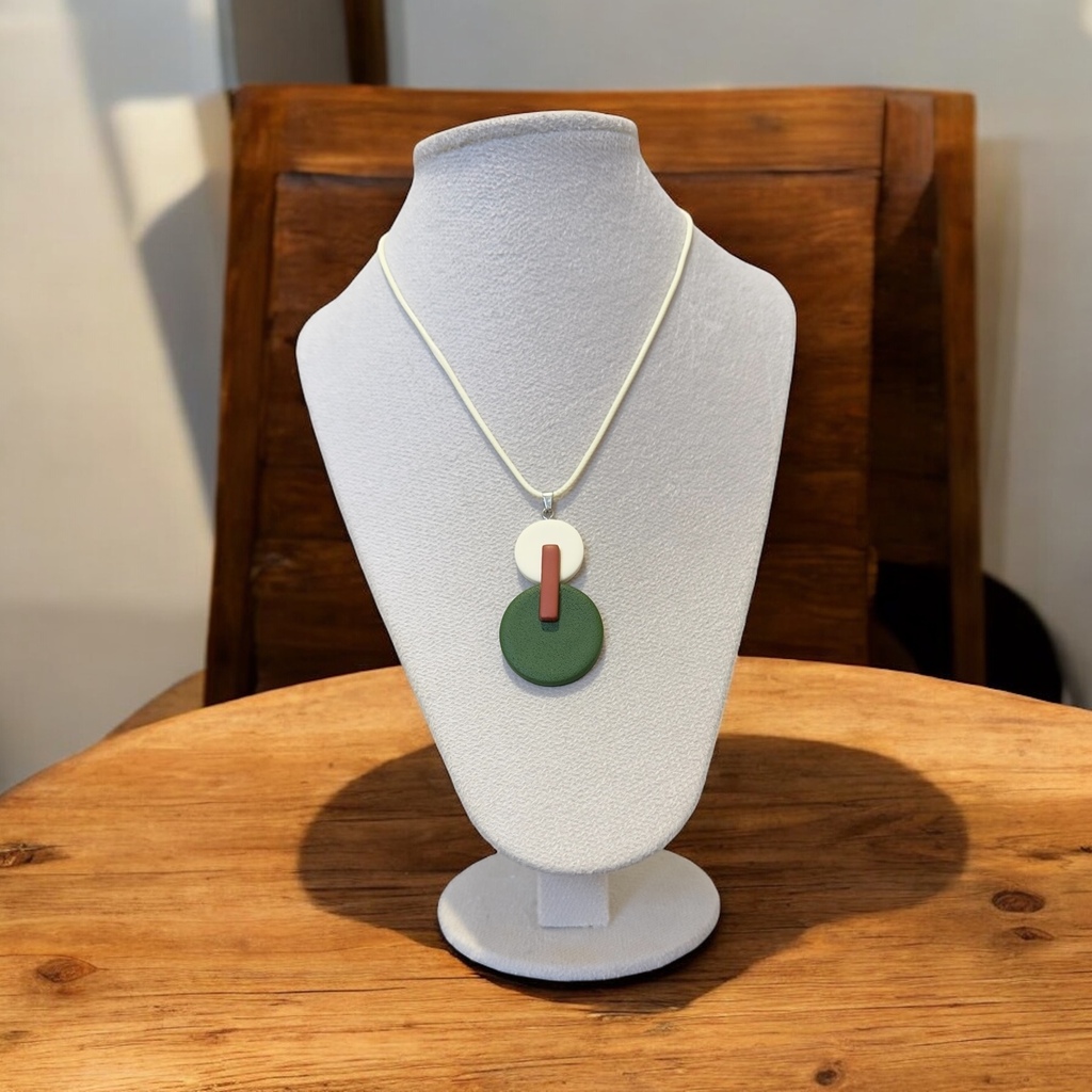 O Colar Clássico é produzido artesanalmente em cerâmica plástica e cordão encerado. O comprimento é regulável.